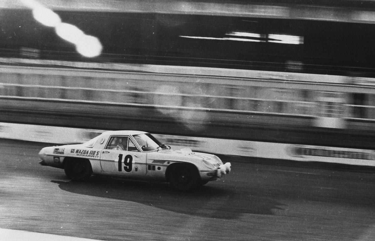 1968 Mazda headquarters while preparing the Cosmo Sport 110S for the 84 Hours of Nürburgring endurance race.